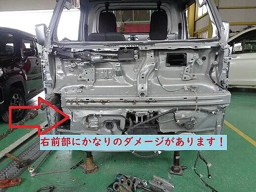 右前に大きなダメージを受けており、右のピラーも損傷を受けております!!