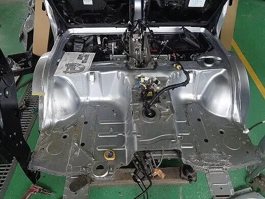 ダッシュパネルを取替の前に、パネルを切開してピラーを引っ張る作業をし~っかり丁寧に行います!